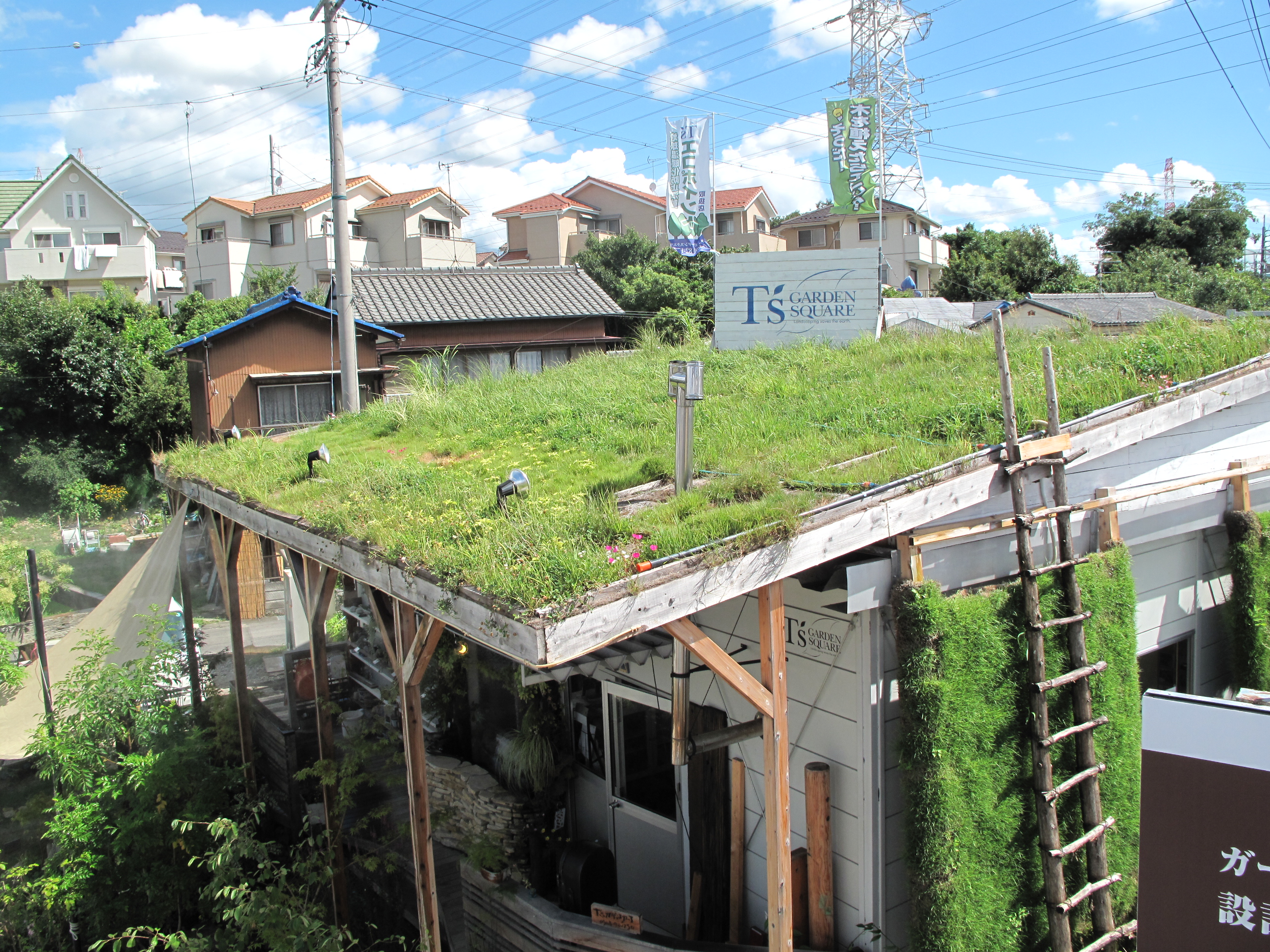 緑、植物で集客効果がある看板が作って見たかった。そんなときに思いついたのが屋上緑化でした。