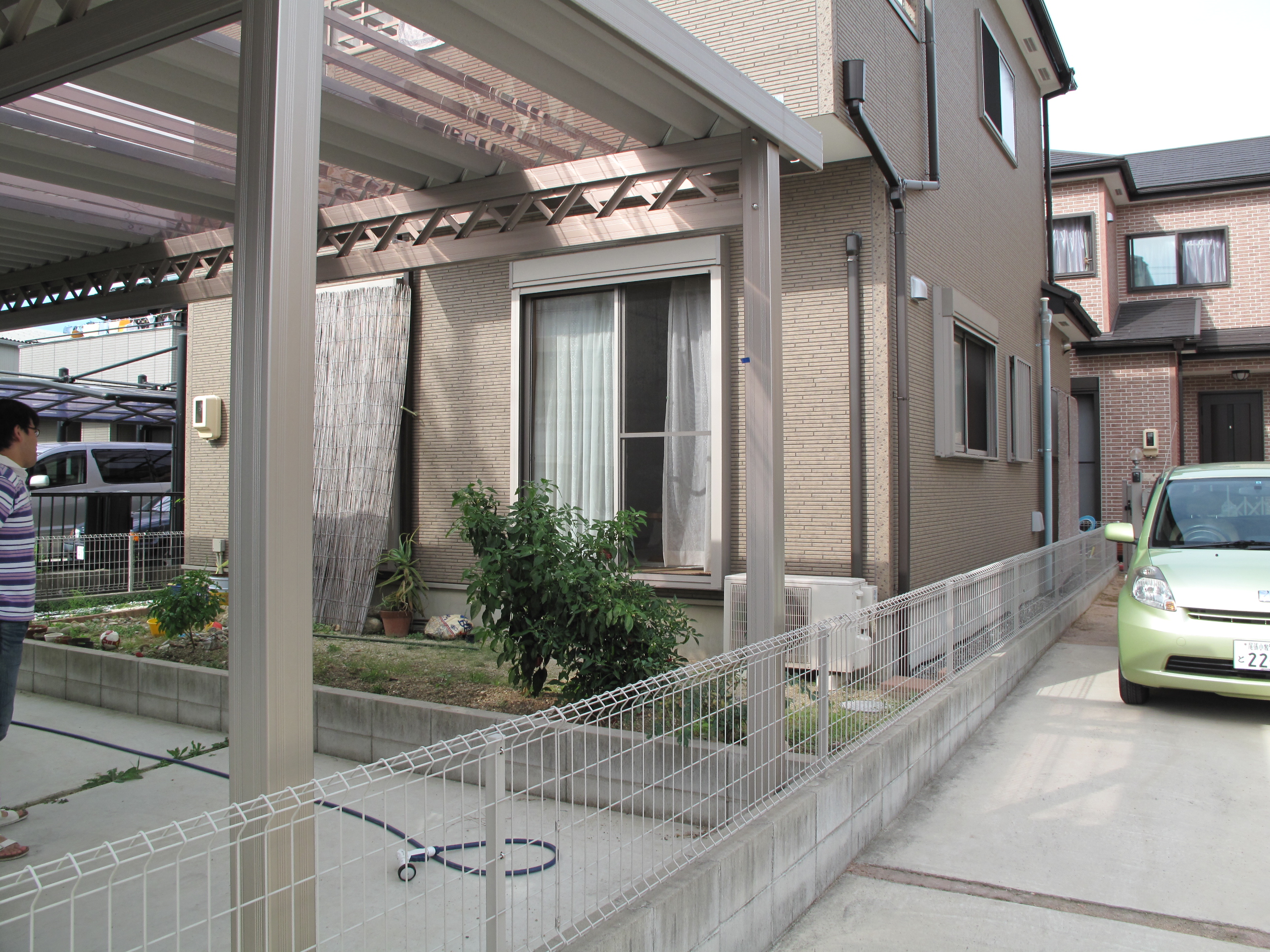 新築で住まれたときに勢いで付けてしまった折半カーポートが日差しをさえぎり、暗く冷たいイメージのお庭を有効利用したいとのご要望でした。