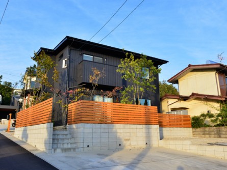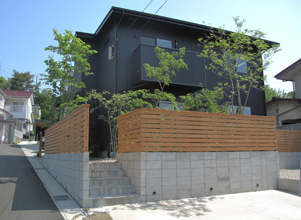 モダンな雑木林の秋と春|モノトーンデザイン住宅