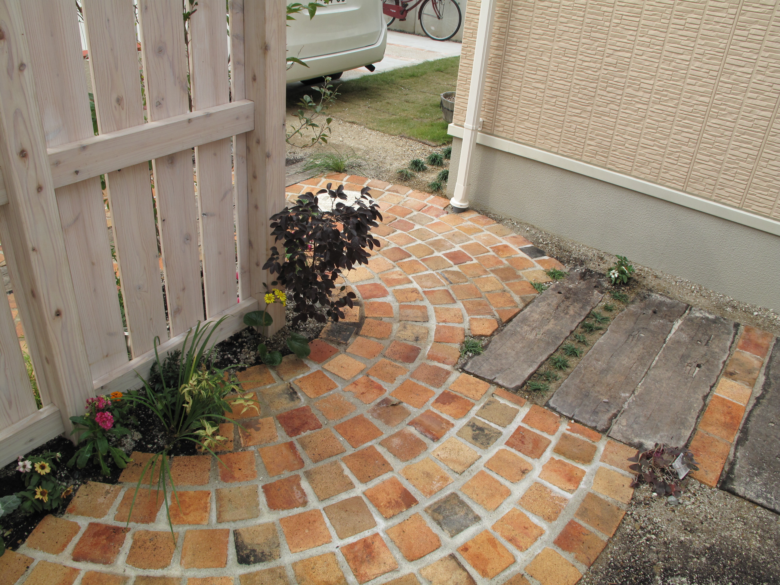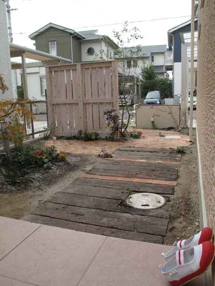 坪庭のシンボルツリー シダレモミジを中心にシックな和風なガーデンにも見えます。