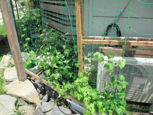 さて、「緑のカーテン」ゴーヤ&アサガオの様子はどうでしょう?