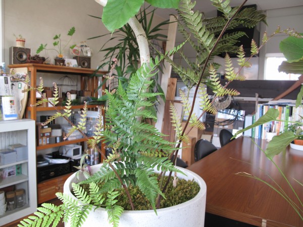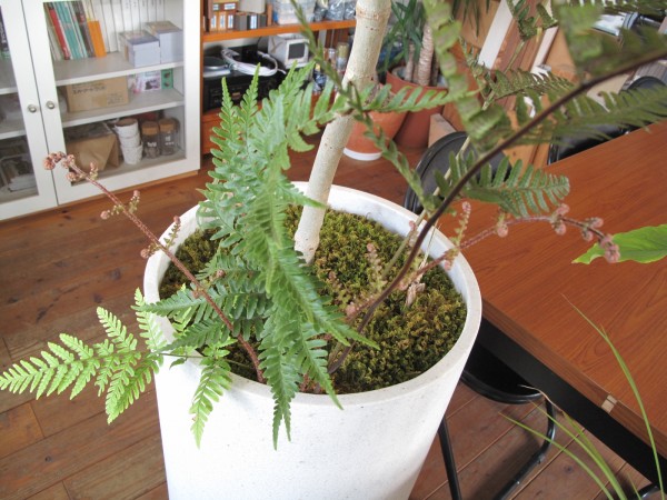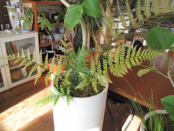 T’sの店内にあるウンベラータの寄せ植えのシダが元気に成長しました。