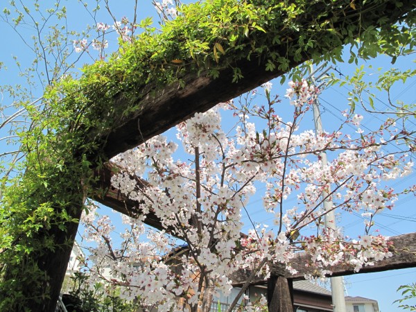 桜の淡~いピンクとモッコウバラの若葉が、春の色合いでとても奇麗です。