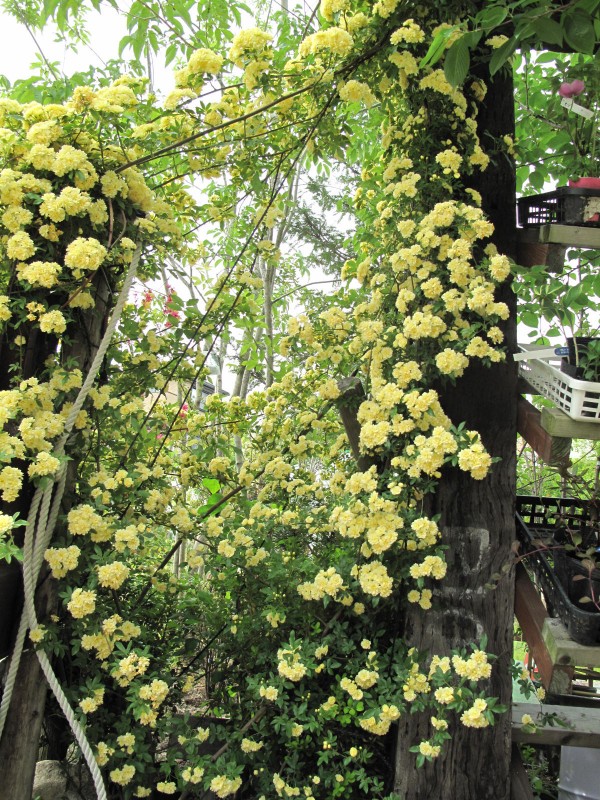 T’sのモッコウバラも満開になって、淡い黄色の花が風に揺らめいています。