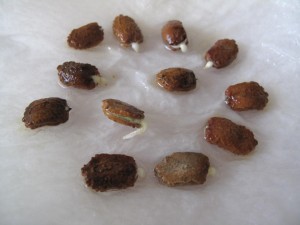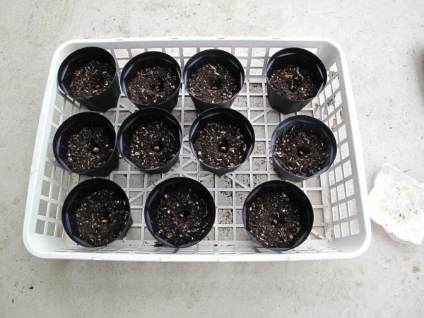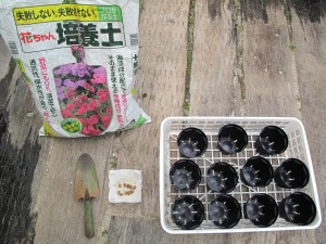 白い根を下向きにして、種ひとつ分程度の土がかぶるように植えます。