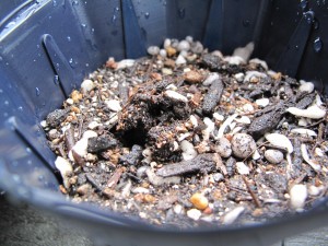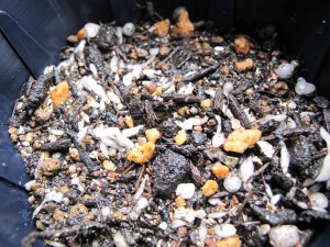 数個あるポットの中で、三個に発芽の前兆が見られました。
