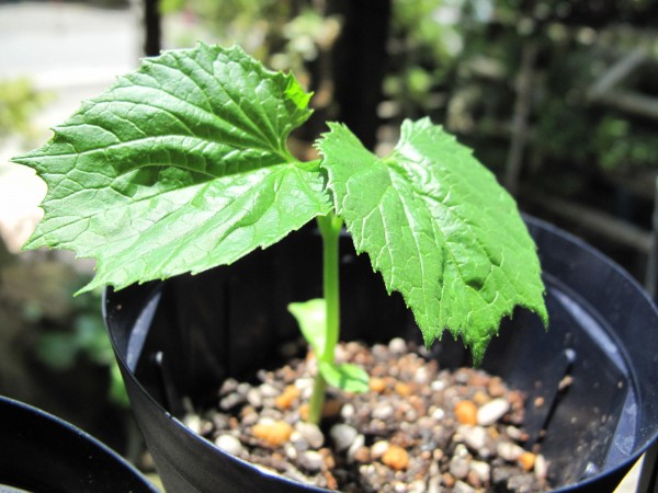 画像では見えませんが、双葉の間から本葉が小さく顔をのぞかせているので、