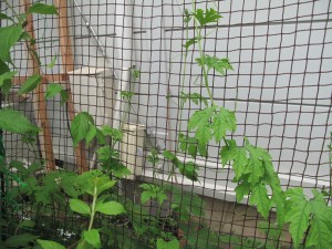 ネットにツルは巻きつけますが、茎自体は裏側で伸びていくようです。