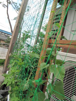 ネットに穴を開け、表に誘引した方が良さそうです。