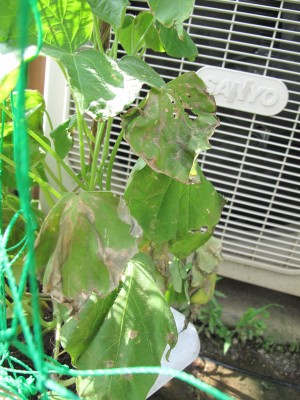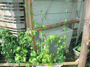 少し気になるのが、室外機前のアサガオです。