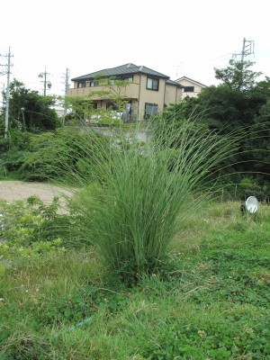 屋根の上では、涼しげに「ススキ」が揺れています。