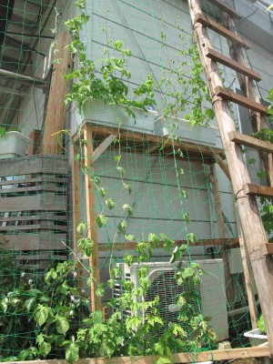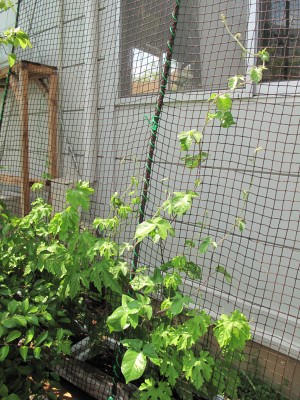 ゴーヤが摘芯したてなので、丈が低くなっていますが、
