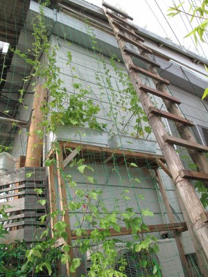 今日のゴーヤとアサガオの様子です。