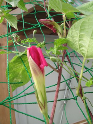 太マスのアサガオに、ピンクの蕾が出来ています。
