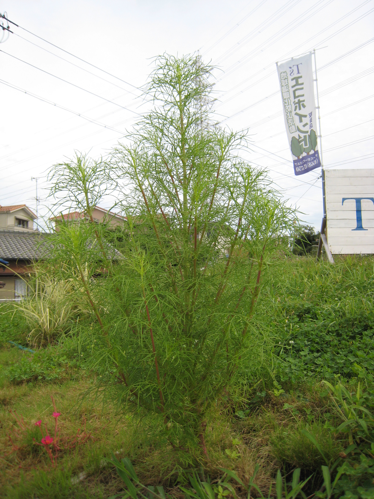 屋根の上のコスモス。