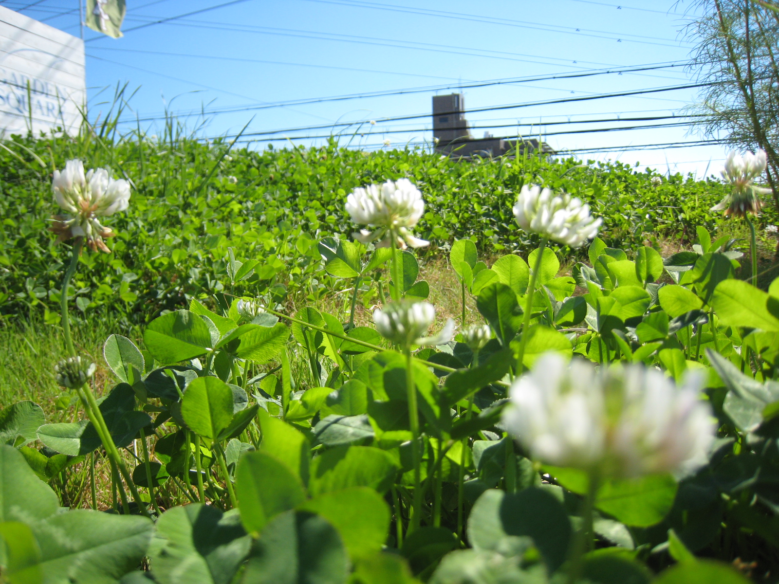 屋上のクローバーさん。白い花がたくさん咲きだしました。