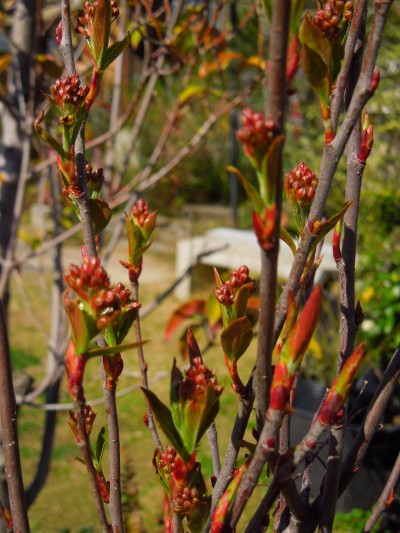 今年は暖かくなったのが早かったので、植物達もあわてて芽や蕾を膨らませたり花を咲かせています。
