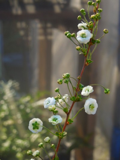 ここしばらく、あたたかい日が続いていたせいか ユキヤナギが真白な花を枝いっぱいに咲かせているのを