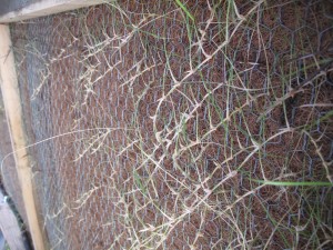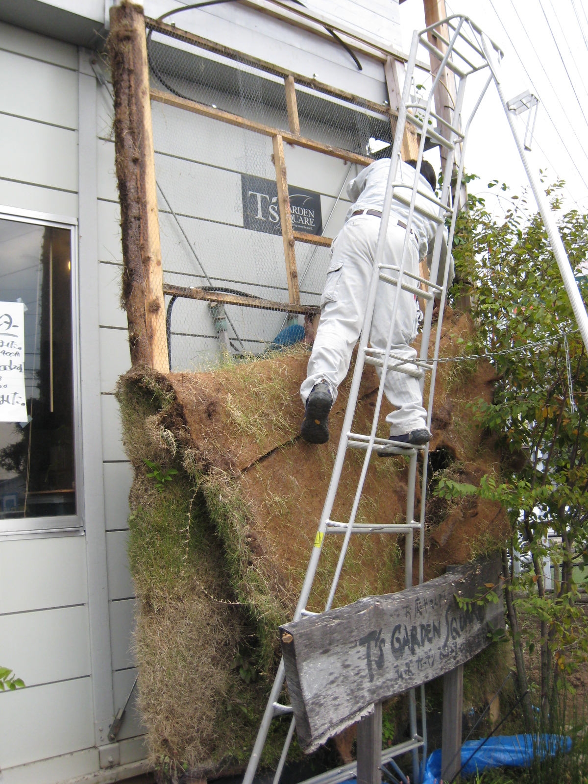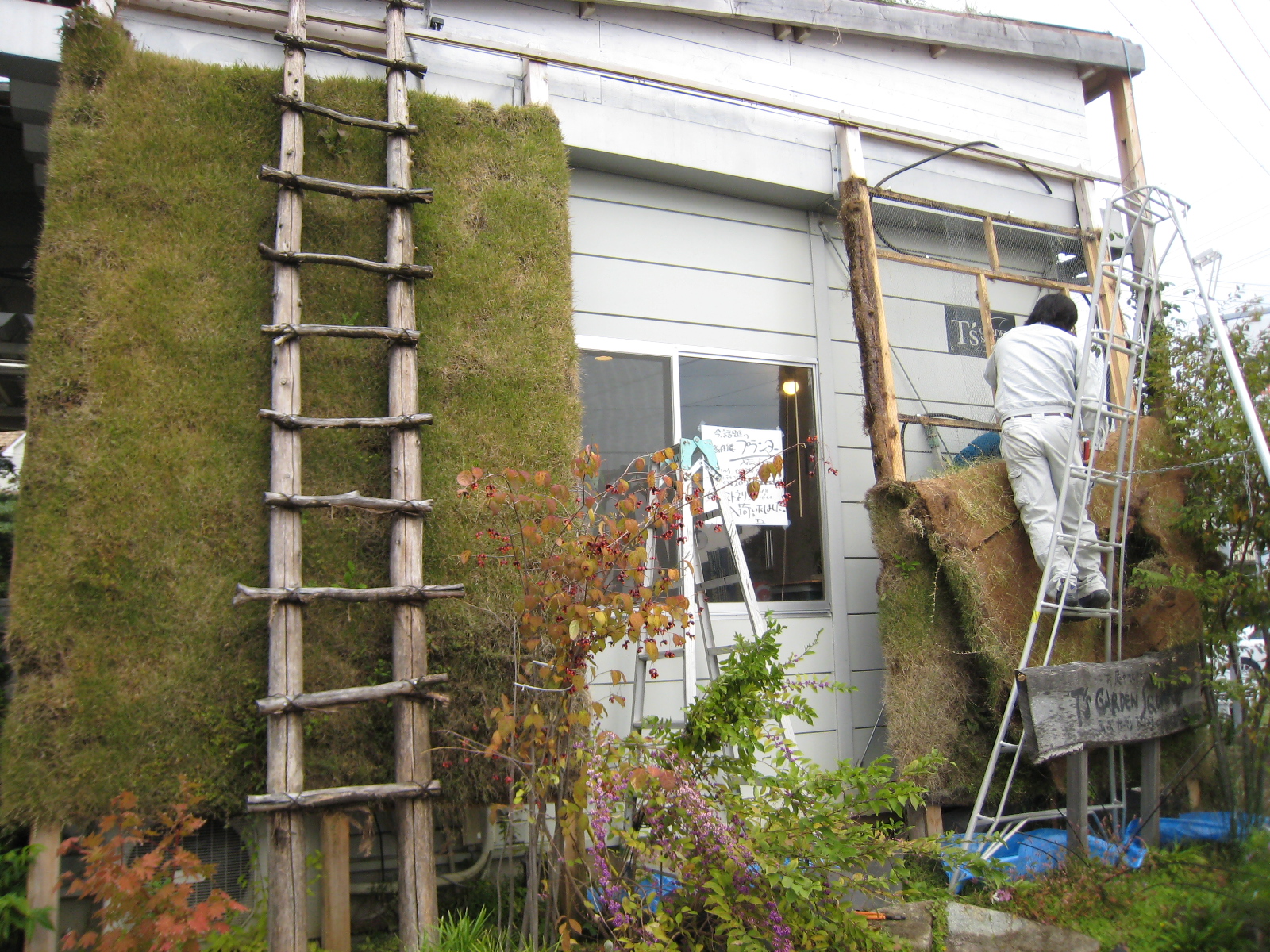 夏の間、青々としていた芝も冬支度をはじめ、徐々に枯れ色になってきました。壁面緑化も衣替えです。
