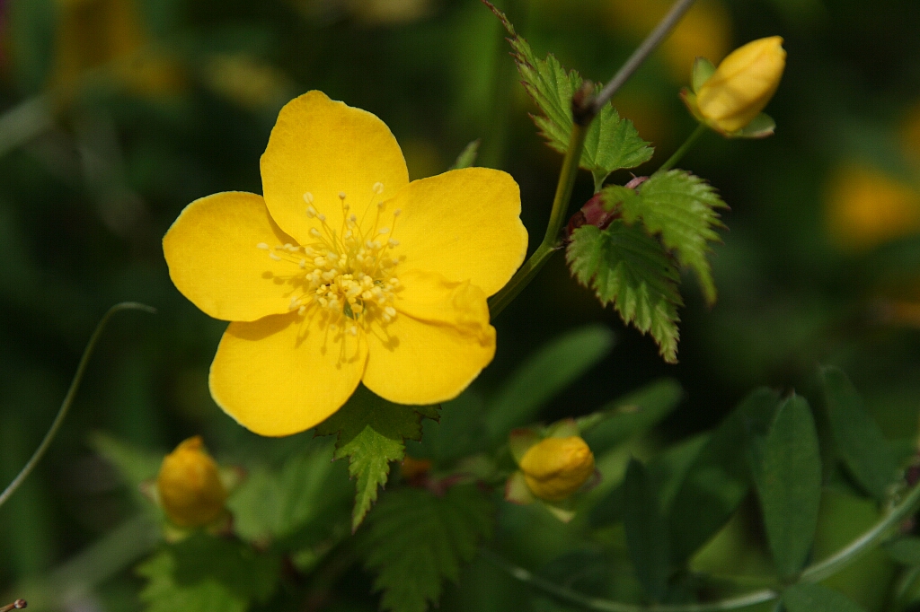 晩春に鮮やかな黄色い花を、株立ちで緑の枝いっぱいに咲かせます。