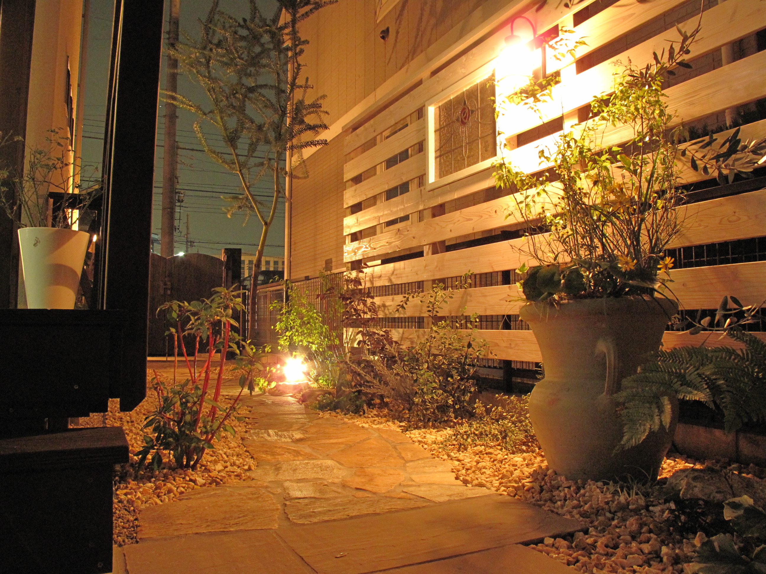 お隣の目線も気になるのでしっかりと囲われたエデン、プライベートガーデンを創りたいとのご依頼でした。