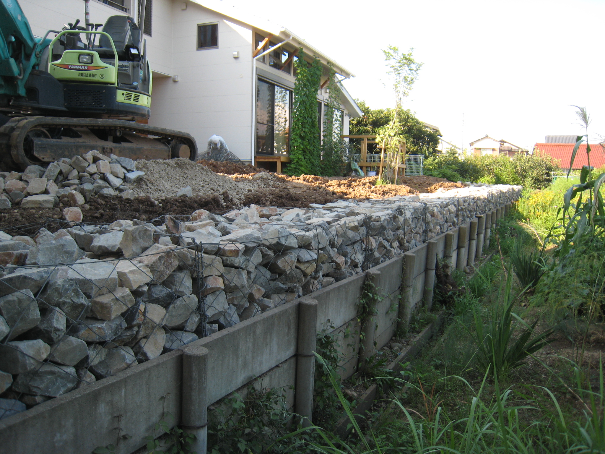 造成土留め工事 一番コストがかかる工事ですが、蛇かごという 土木で利用する工法でコストを抑えました。