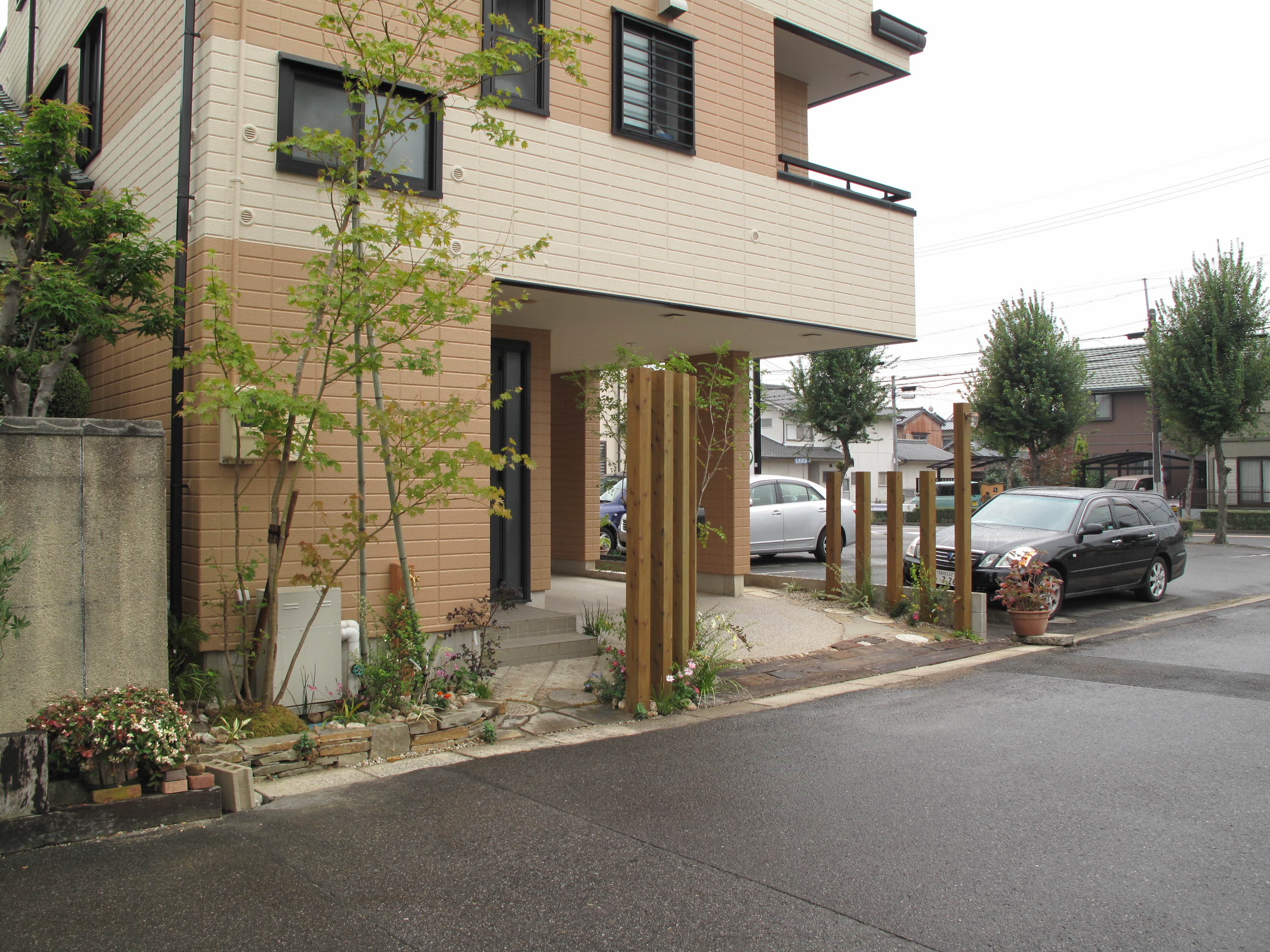 。 玄関を道路から直接見えないようにするためにハイパーテーション
