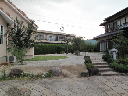 洋風なイメージを出すワンポイントで丸く芝をはりました。