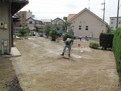 今回使用した砂利は白川砂利3分 粒子が小さめの砂利ですが、踏むとかなり大きな音が出ます。