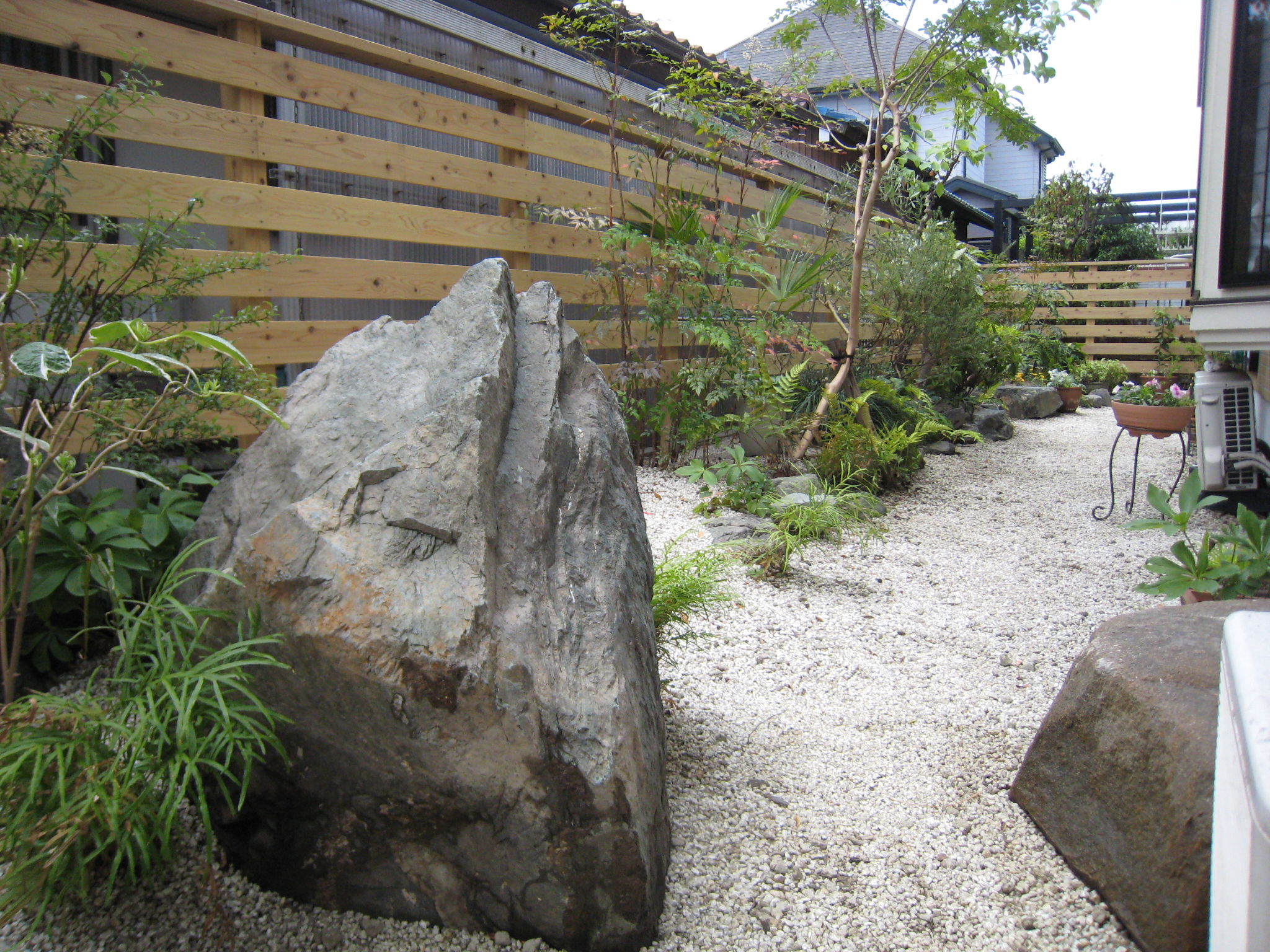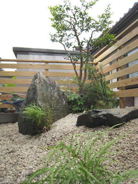 静寂の中に力強さを表現しました。石は据え方によって表情が変わります。1mmの変化でたくましくも美しくも見えます