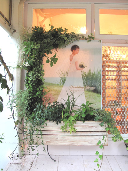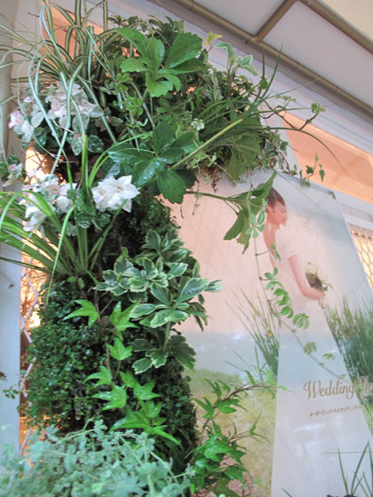 又水ゴケ内部にも散水用のチューブが仕込んであるので水やりも楽々です。 花の中に素敵な写真パネルをはめ込みます。 モデルさんが素敵なので 植物たちが際立ちます