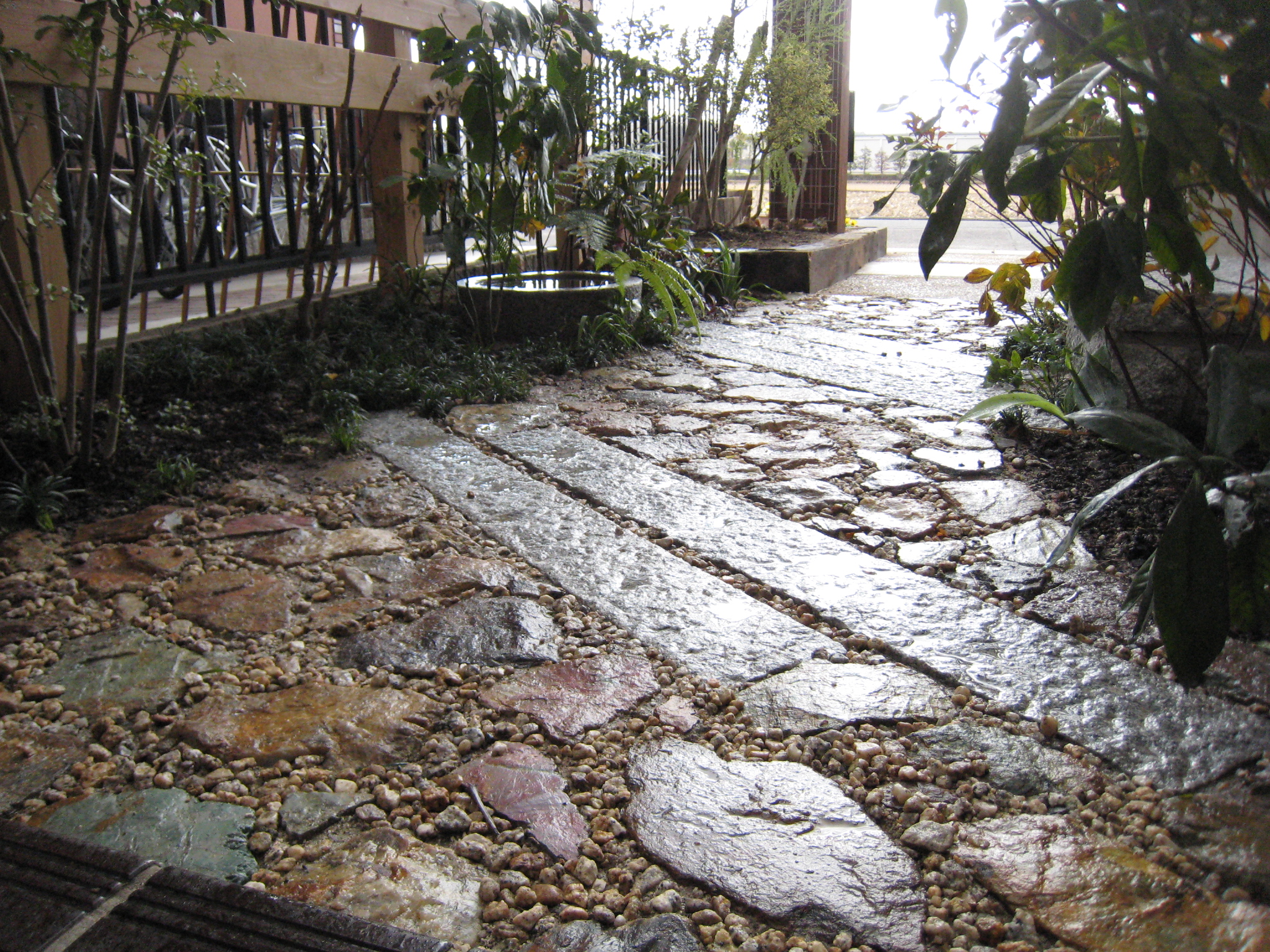 しかも歩く歩幅にあわせてあるため 茶色いごつごつしたチャート石の上を歩くわずらわしさも軽減しています。
