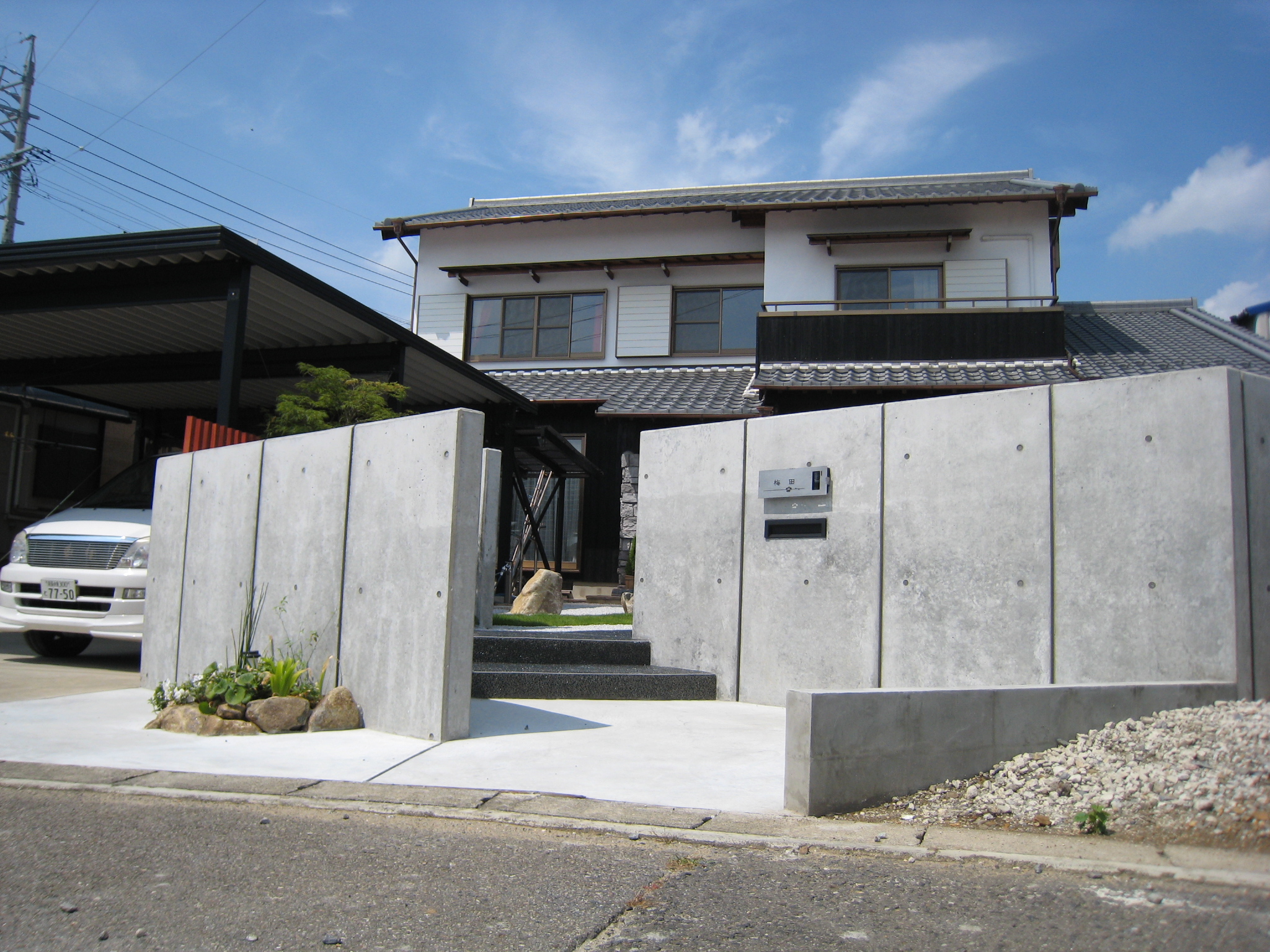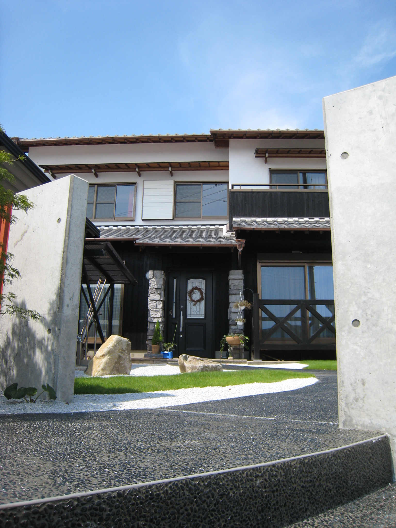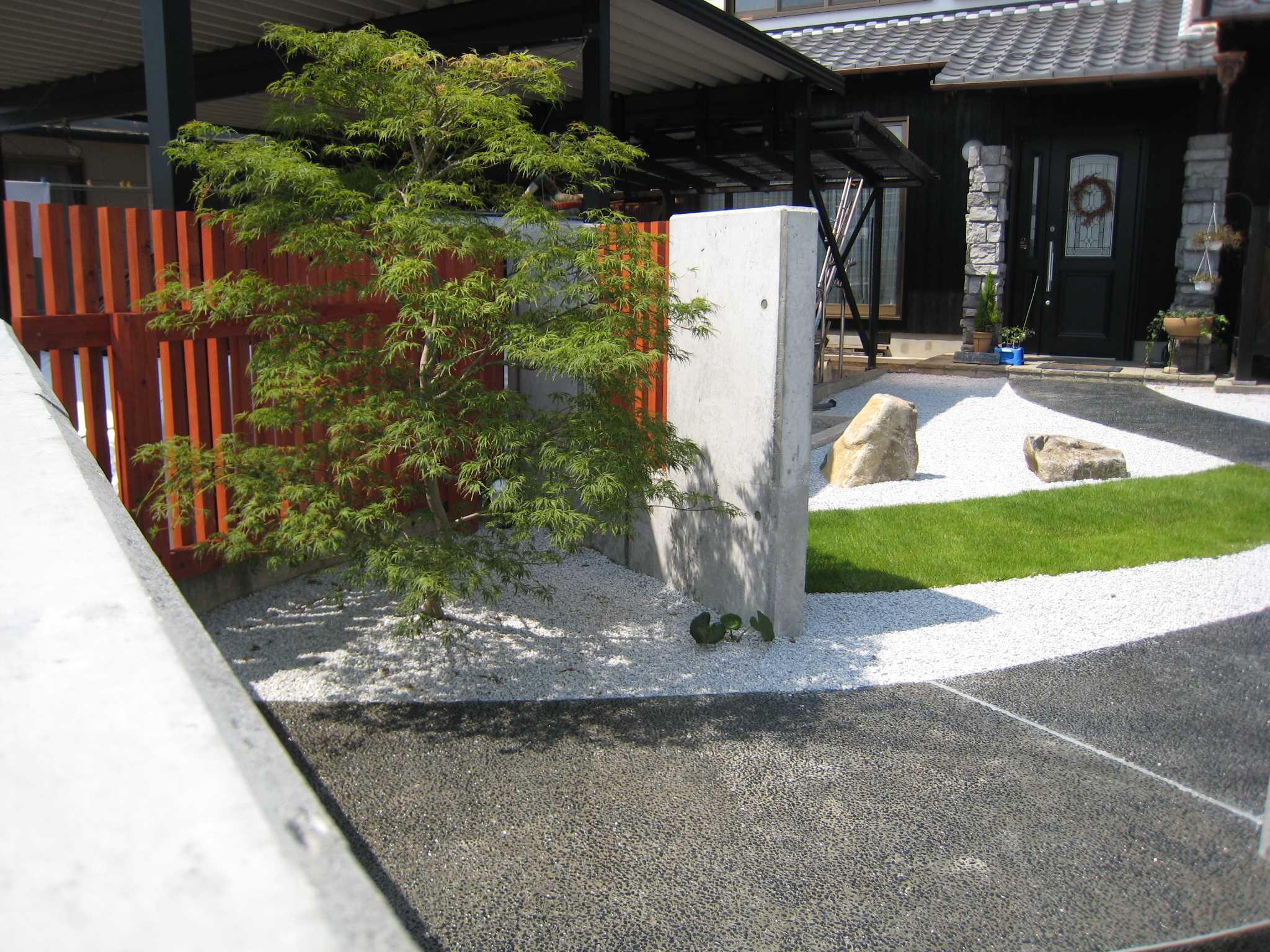 U様のご自宅との調和を考え、コンクリートのみではなく、緑をアクセントとして使うことで温かみと和を表現しました。