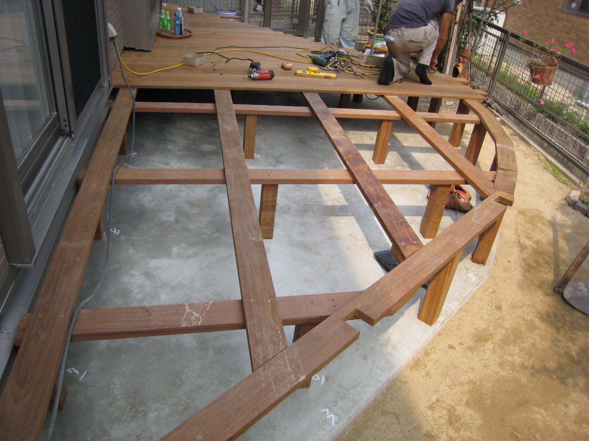 完成です。貼り方を変えることにより単調になりがちなデッキスペースにリズム感を表現しました。
