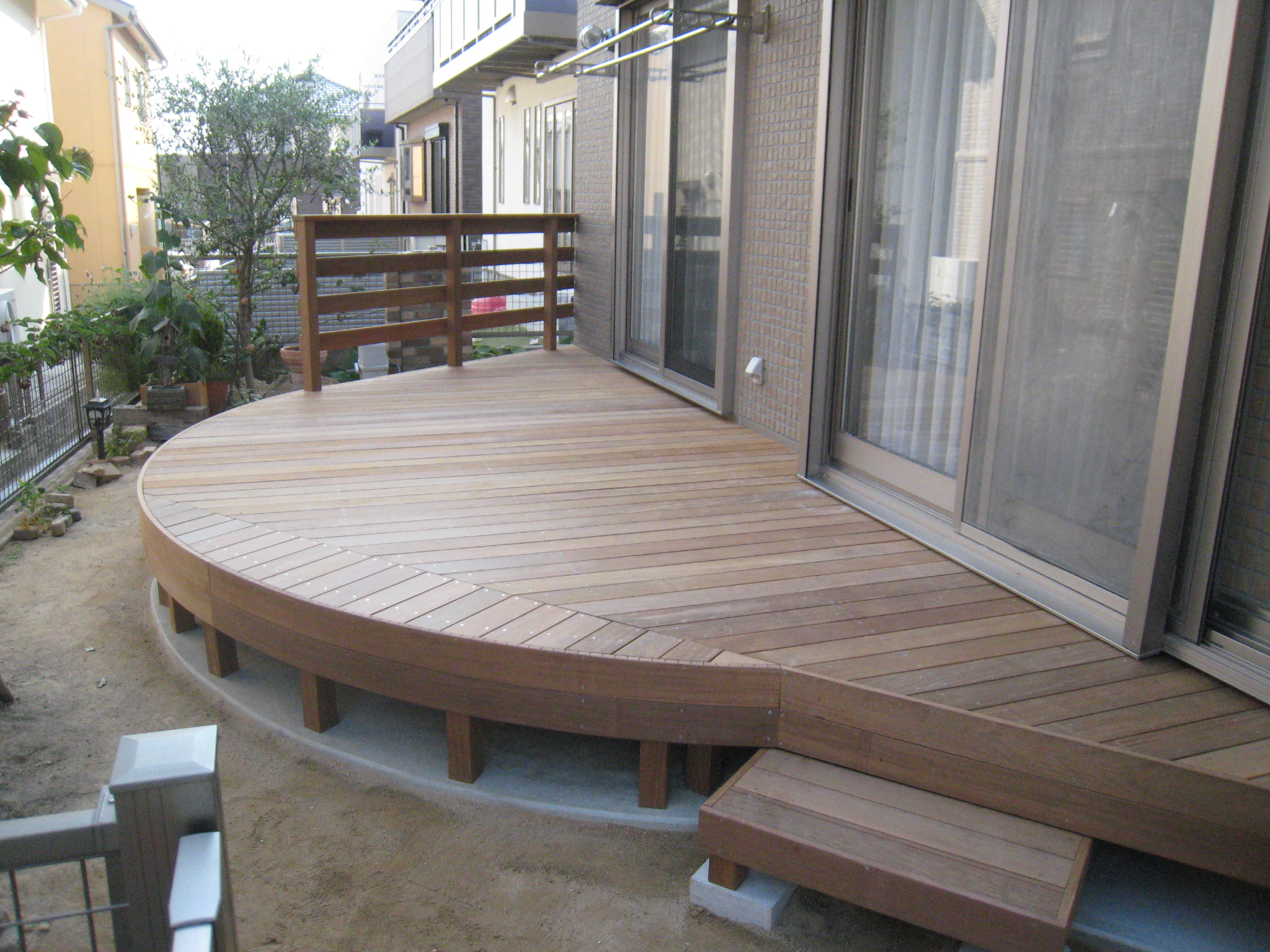 イぺのビックウッドデッキ曲線で優しさ表現・・・。