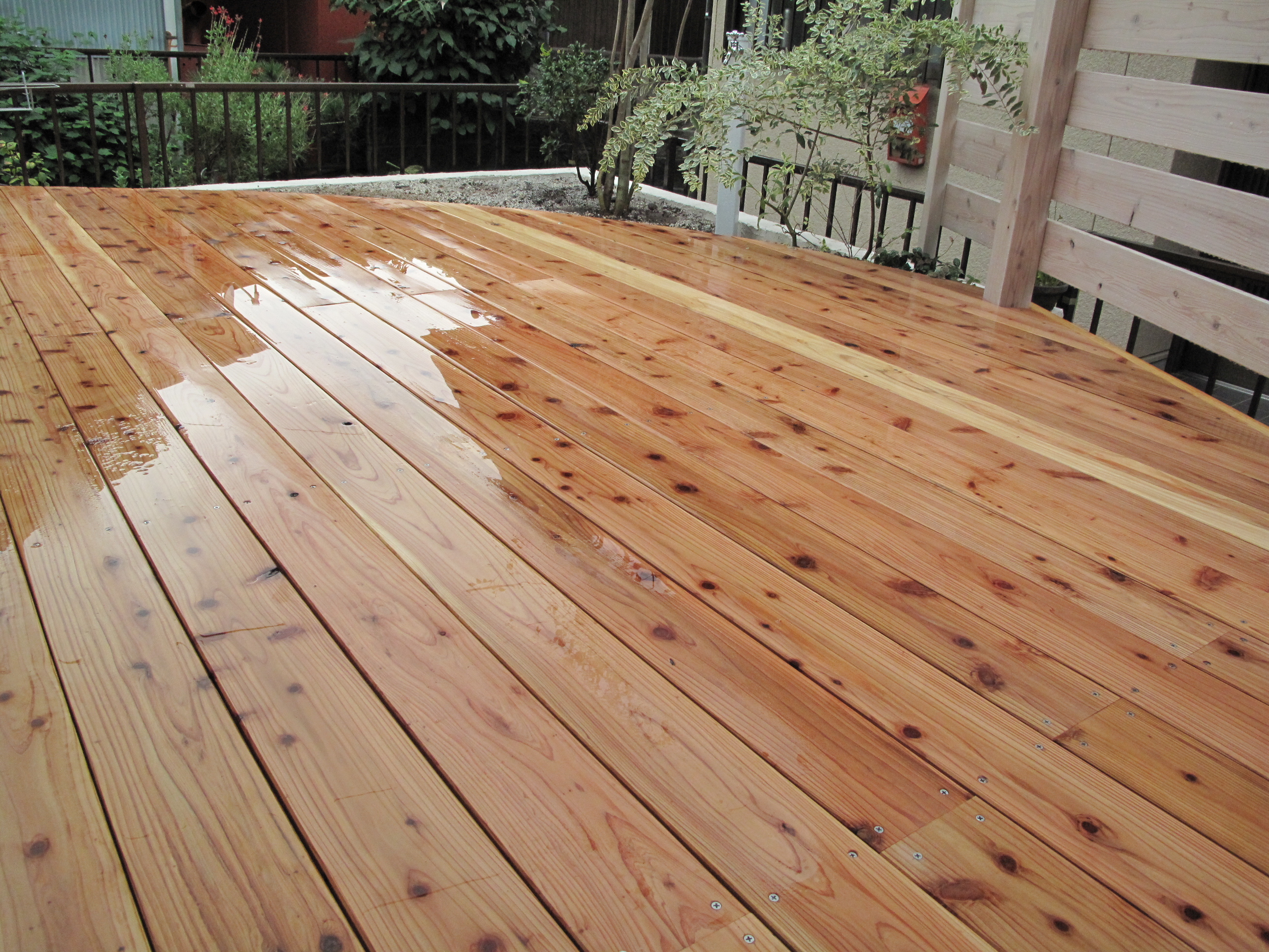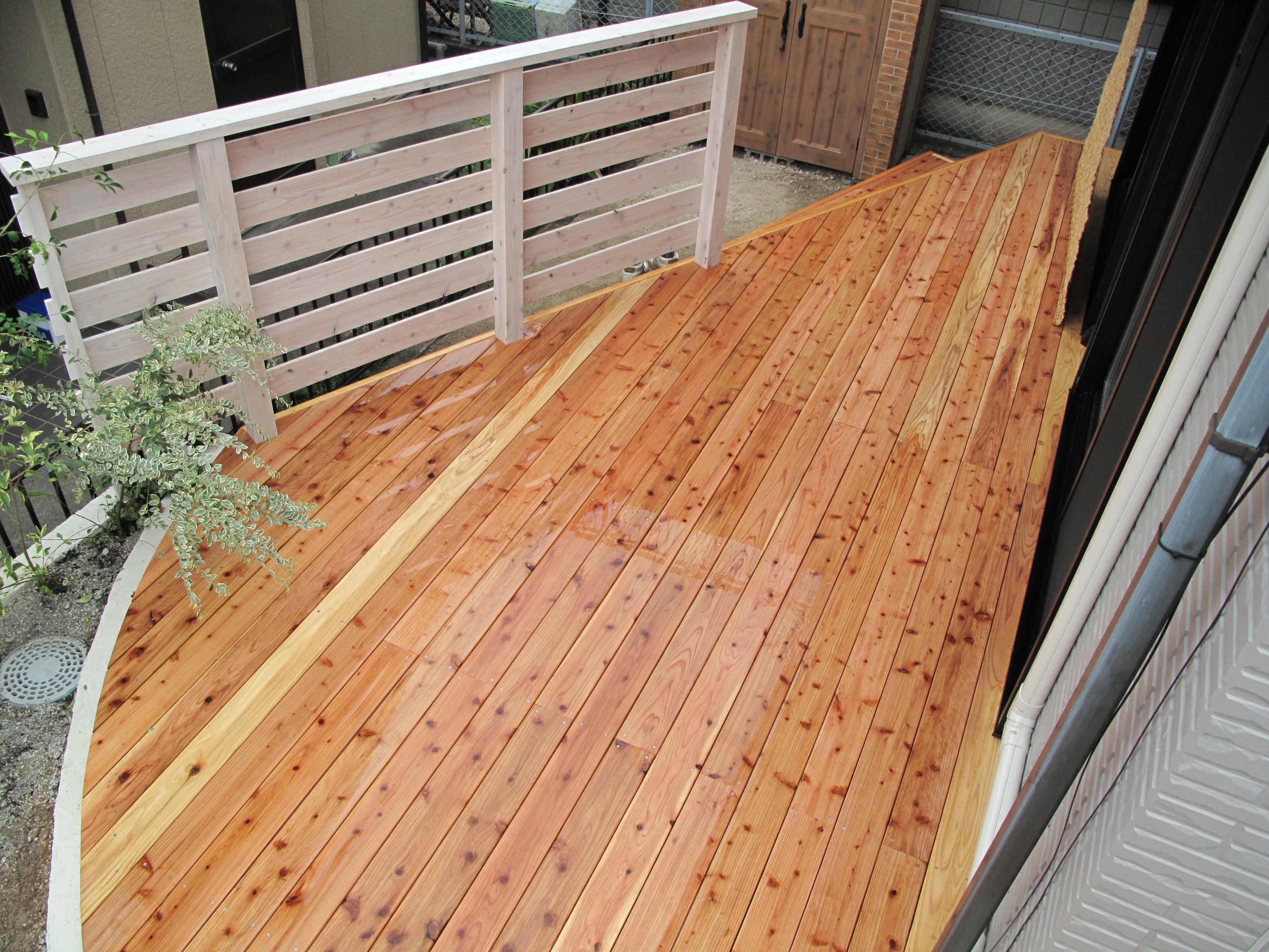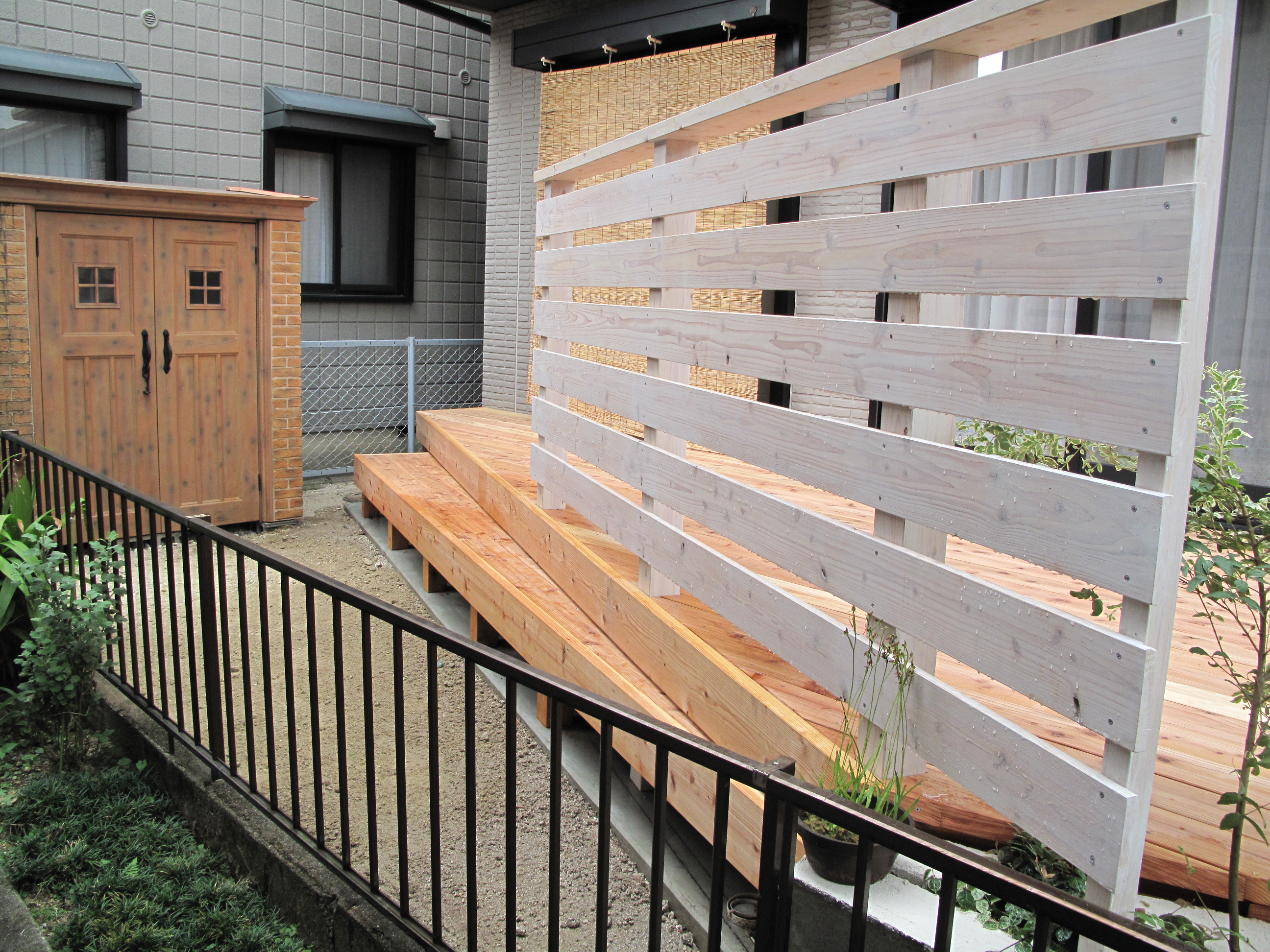 から「使いやすい庭」をテーマに全面ウッドデッキにしバリアフリーな空間のご提案をしました。