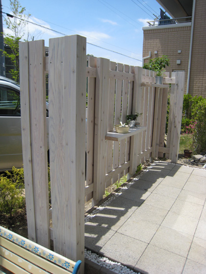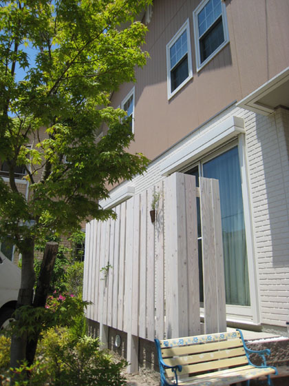 天然木のぬくもりを利用した プライベートガーデン。