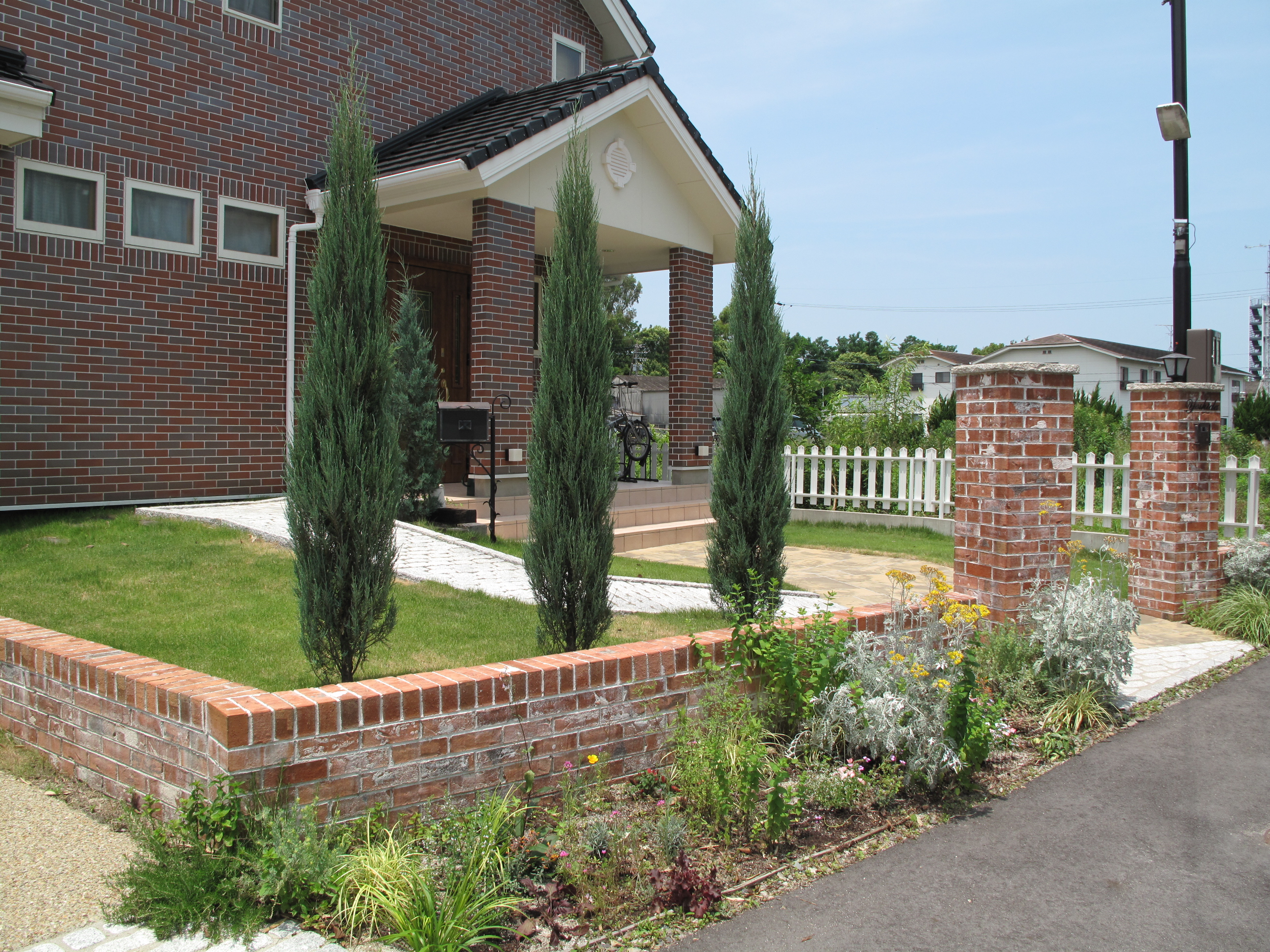 庭の奥を低くし地平線のように広がりを出しています。 コニファーで、ももっともポピュラーなゴールドクレストは、Tsのプランツリストでは使用禁止となっています。 別名 自爆木 と呼んでいるのですが、成長が早すぎて、根が張る前に上部がどんどん大きくなり台風等でよく倒れるためその名がつきました。
