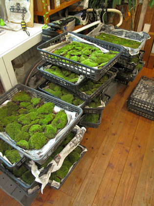 盆栽などの下草にはホソバオキナゴケが使われていた。